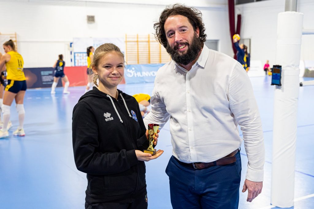 Kiss Blanka a Hónap Utánpótlás Játékosa Díjat az SZBRA vezetőjétől, Komáromi Mórictól vehette át.